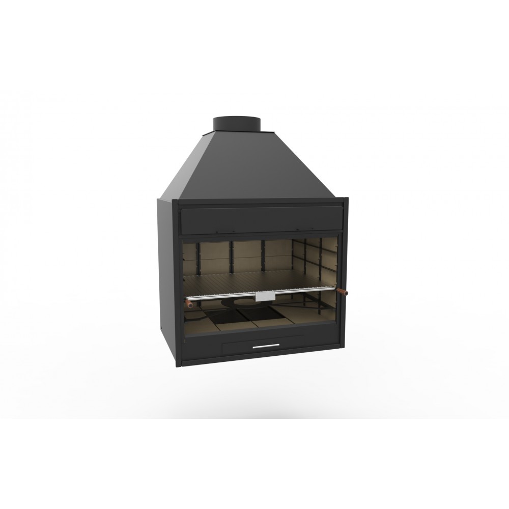 Incluye parrilla asados, regulable a 4 alturas: 89,5 x 65 cm.