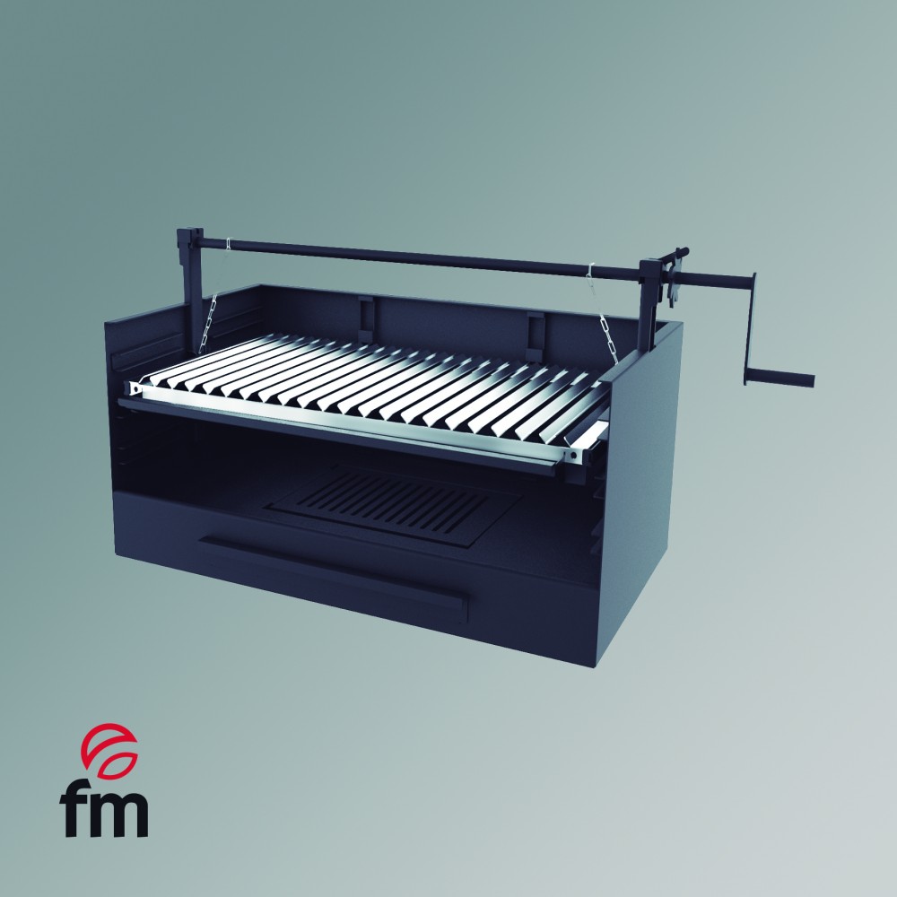 Incluye parrilla inoxidable y recoge-grasas, regulable en altura.