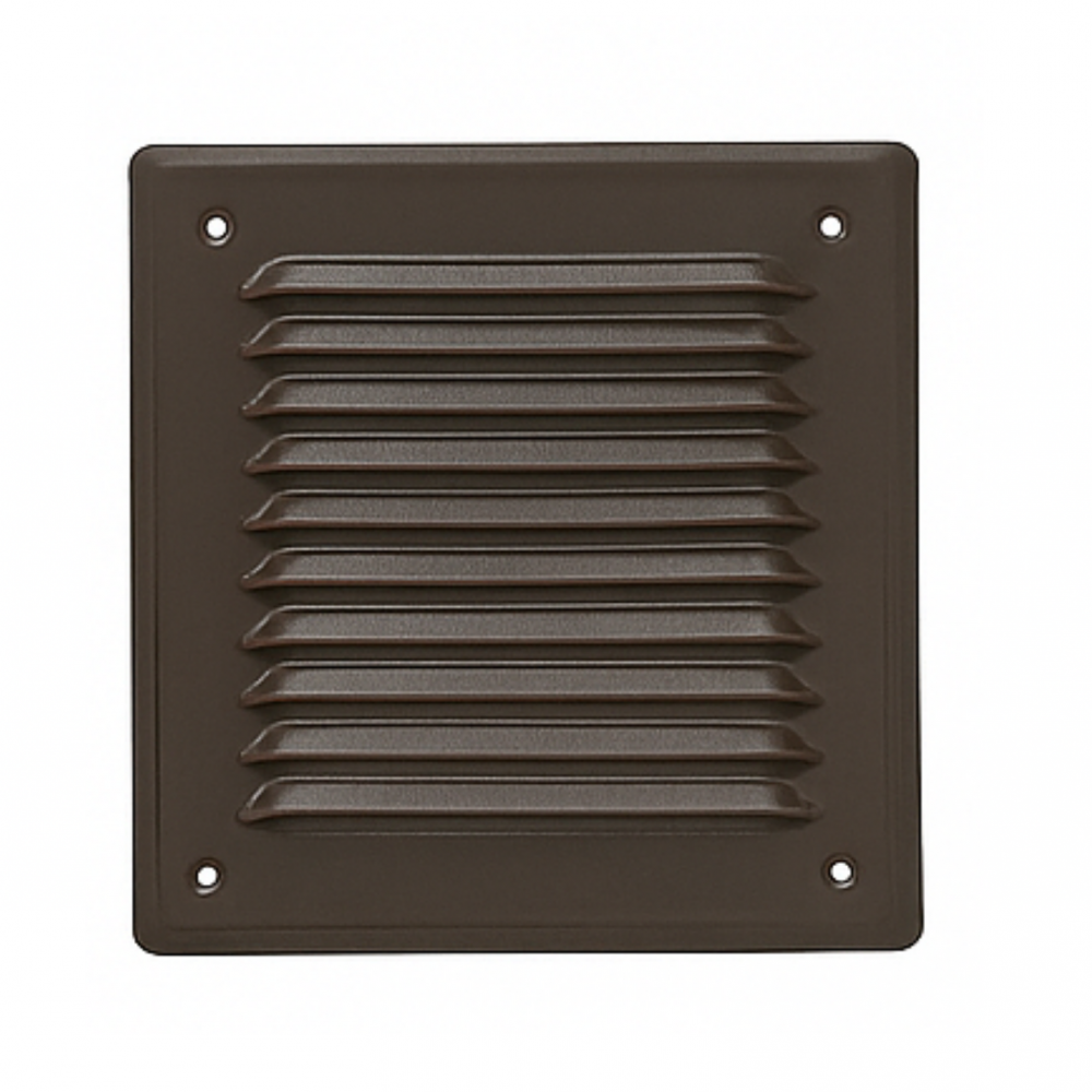 Rejilla metálica de ventilación en color marrón, perfecta para espacios donde se busca una integración estética con tonos cálidos. Fabricada en chapa pintada con acabado epoxi que garantiza durabilidad y buena resistencia. Cuenta con malla antimosquitos para evitar la entrada de insectos, manteniendo una ventilación constante y segura.